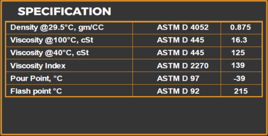 API GL-5/MT-1(EQV.MIL-L2105D), SAE J2360, SCANIA STO 1:0, MAN 342 M2, ZF TE ML 05A, 7A, 12E, 16B, C & D, 178, 198, 21A, VOLVO 1273.10.